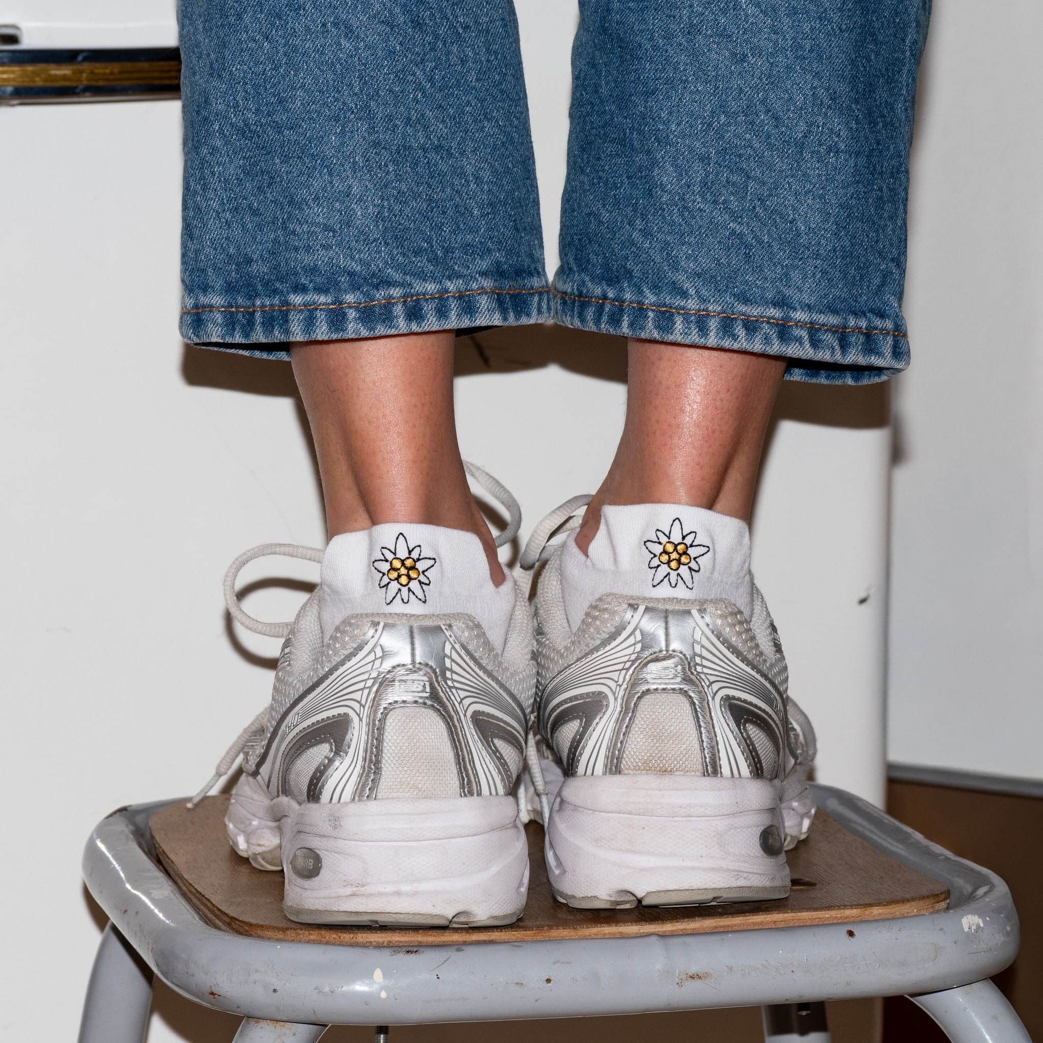 Elle pousse là où peu osent aller — et maintenant elle est sur tes pieds. 🌼 Nos chaussettes Edelweiss portent la fleur alpine la plus emblématique de Suisse avec une élégance qui n’appartient qu’à elle. Pour les amoureux des Alpes, les randonneurs du week-end et tous ceux qui portent la Suisse dans leur cœur.