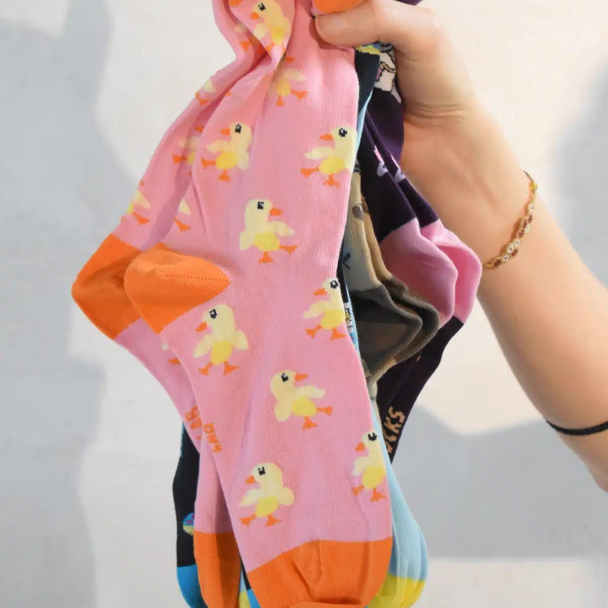 Nos collections fun et décalées sont pensées pour ajouter une touche de couleur à tes tenues, et des sourires pour toi et ceux qui les remarquent. Que ce soit un weekend cosy, au bureau ou des situations sociales, rien ne vaut une paire de chaussettes confortables qui sort du lot et brise la monotonie.